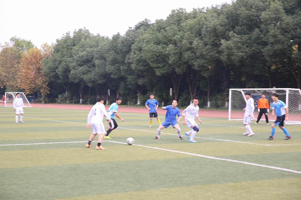 “中心”组队参加了比赛。图为“中心”足球队与省交科院足球队在比赛中。